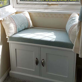We’ve designed our hallway shoe bench to fit a corridor style hallway as well as more rectangular entrances and it has dimensions of W:112cm D:40cm H:52cm. If yours is a long hallway and the family have numerous pairs of outdoor shoes or sports shoes to tidy away, think about adding a second bench alongside to provide a home for all the pairs you need to store. Our hallway shoe bench is made from MDF. The material is stable despite fluctuating temperature and humidity in a home environment to ensure your piece of furniture is a durable design. The doors of the hallway shoe bench are Shaker style, so the design won’t date. The shoe bench is easy to look after. If the paint gets marked by muddy shoes, simply wipe clean with a damp cloth. The seat pad, if you choose to add one, can be gently vacuumed with the upholstery attachment on your vacuum cleaner.