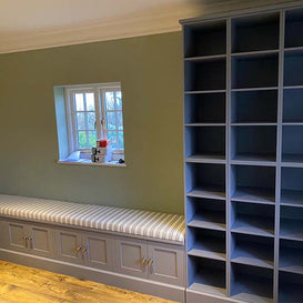 Our boot room storage is created using our versatile New Hampshire modular units, and can provide all-in-one storage. It’s easily combined with some of our other great storage solutions as well, though, to give you a customised furniture combination. If you want hanging space for coats and bags, or the dog’s lead, think about adding in a Shaker-style peg rail, or try a peg rail with shelf above, which will allow you to add in some decorative pieces as well as hanging items below. You can go for shelf baskets, too, which will corral items like gloves and scarves. Pretty up your seating with cushions in fabrics that co-ordinate with your seat pads. All the fabrics in our collection are organised in colour groups so colour combining is easy.